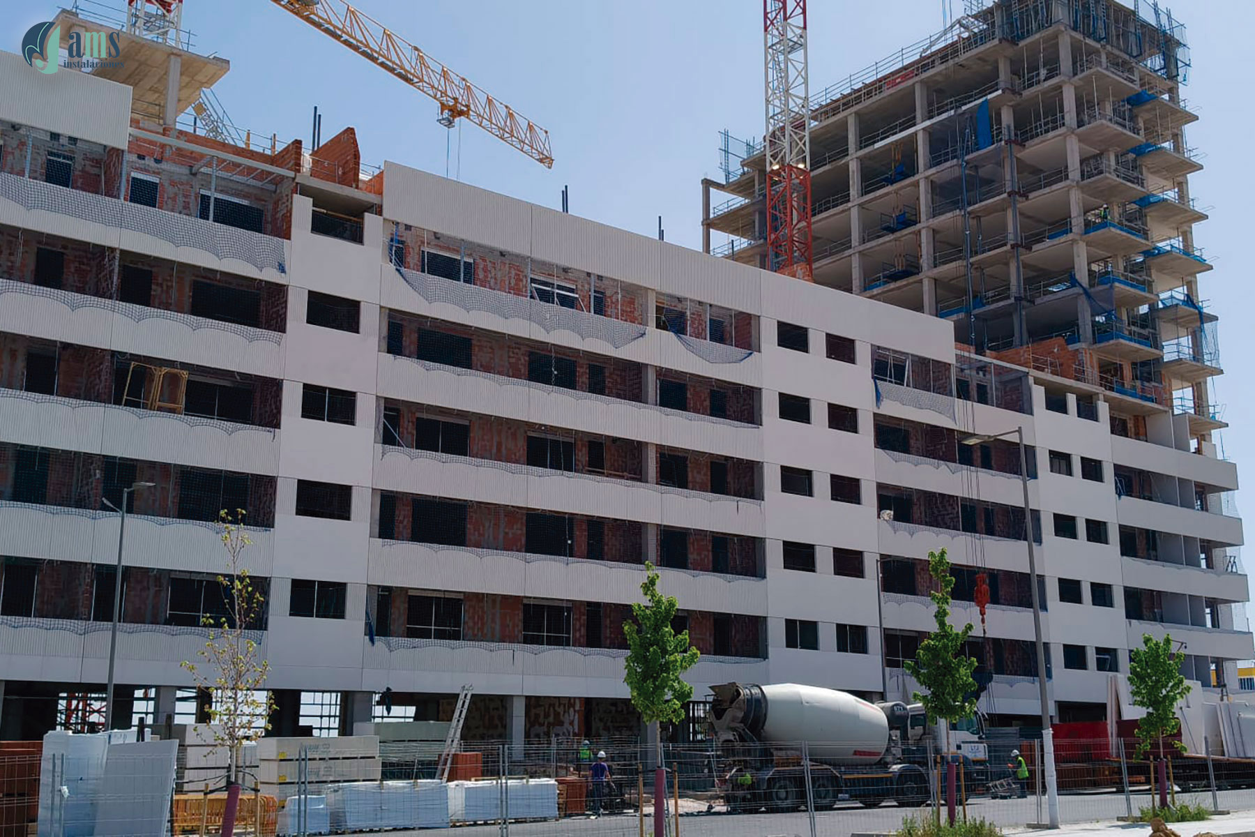 En una de las impresionantes zonas de expansión del area metropolitana de Madrid, conocida como Los Berrocales, el Grupo AMS está participando en la obra de construcción de 110 viviendas, con la instalación de los sistemas de yeso laminado (tabiquería, trasdosados, falsos techos) y soluciones de aislamiento termo-acústico asociadas