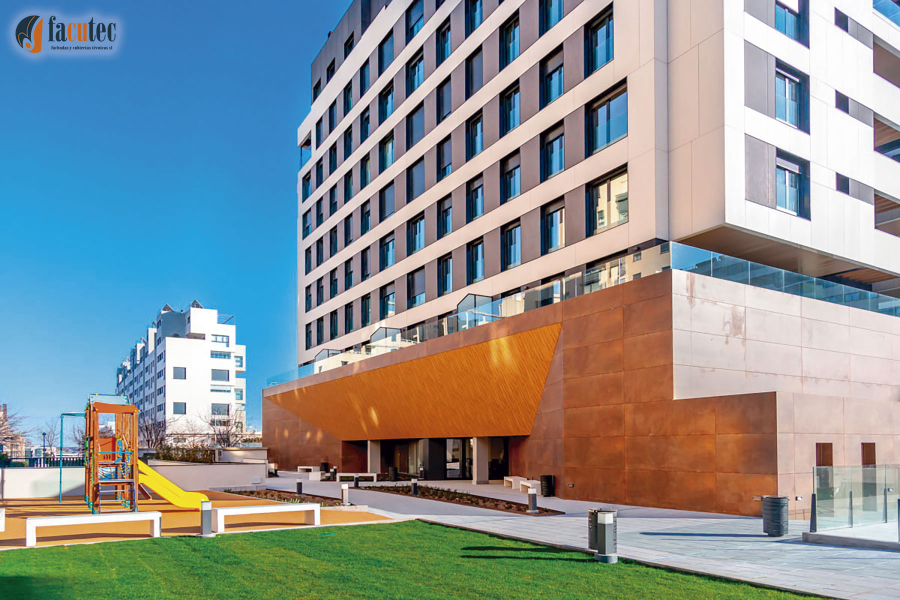 Tras la demolición, por traslado a nueva ubicación, del estadio deportivo del Atlético de Madrid, Vicente Calderón, se creo una privilegiada zona perfectamente ubucada en Madrid, donde entre otros proyectos, el Grupo AMS a través de su instaladora AMS Instalaciones, particpó en la construcción de 223 viviendas, conocidas como Residencial River Park, donde instalamos los revestimientos y fachadas ventiladas de panel composite de aluminio así como sus aislamientos térmicos y acústicos asociados al mismo.