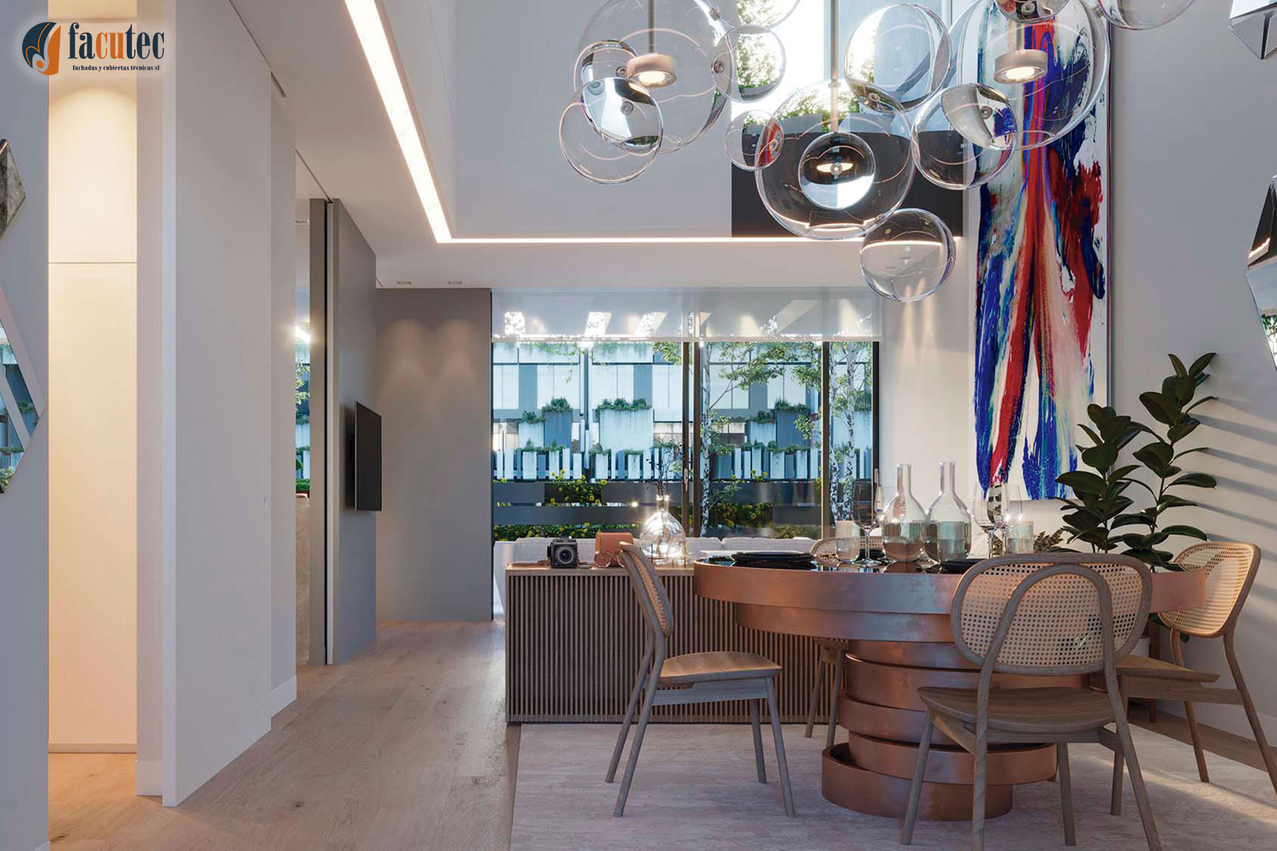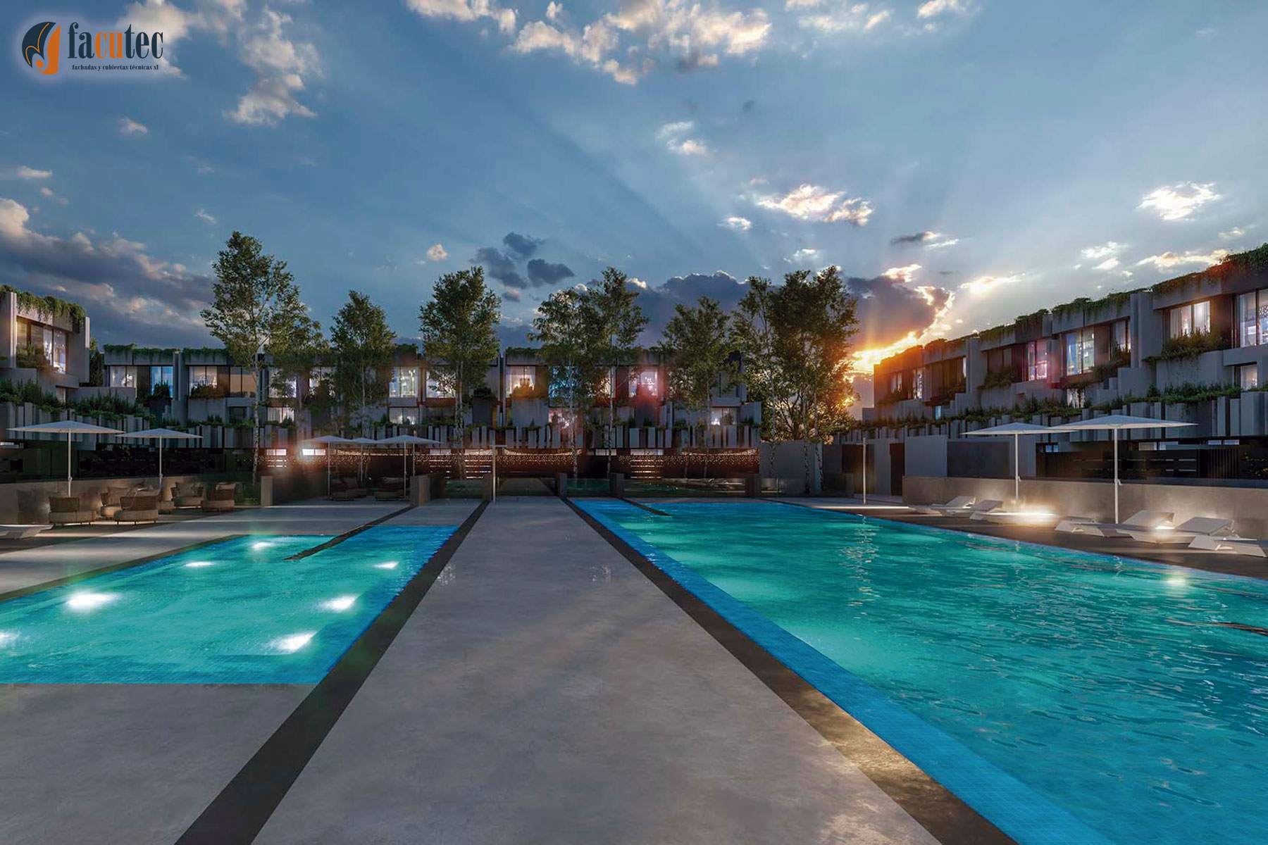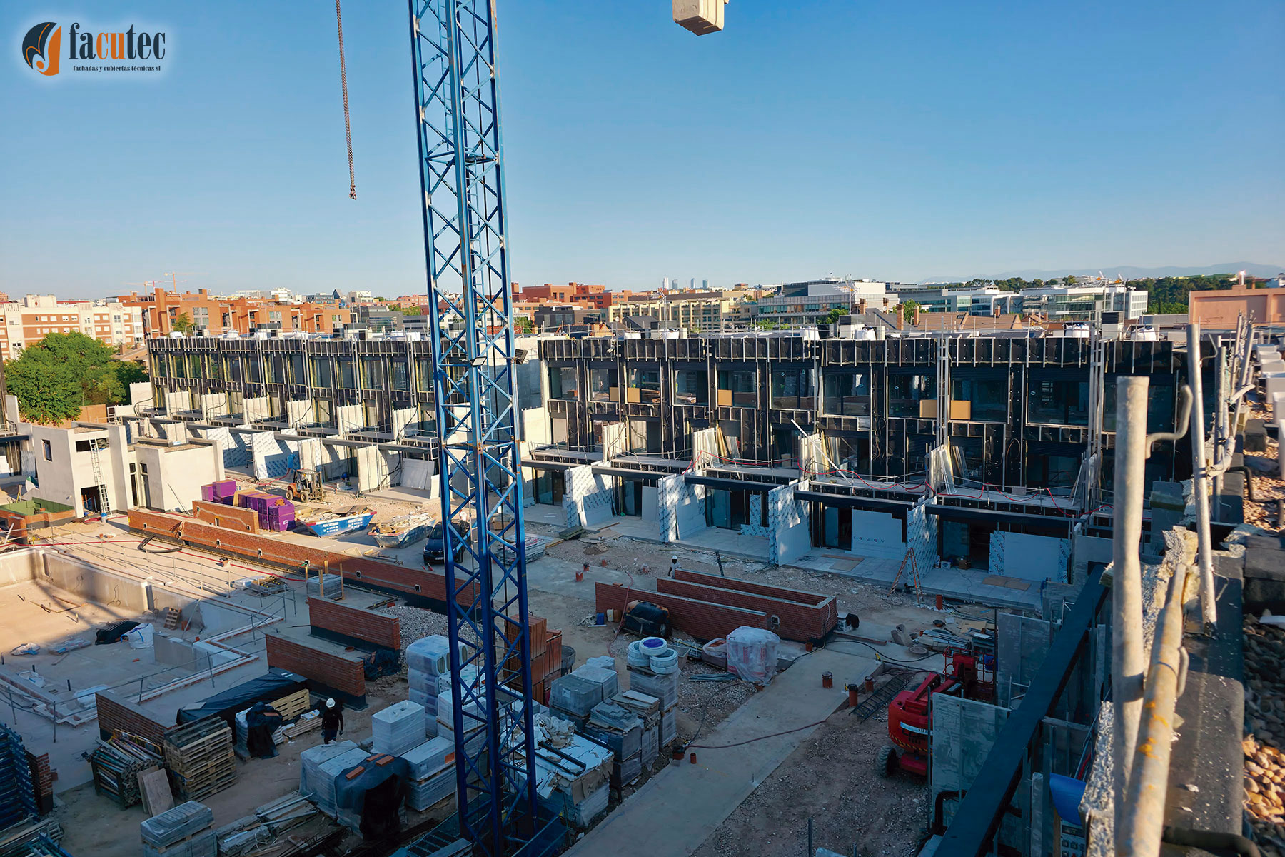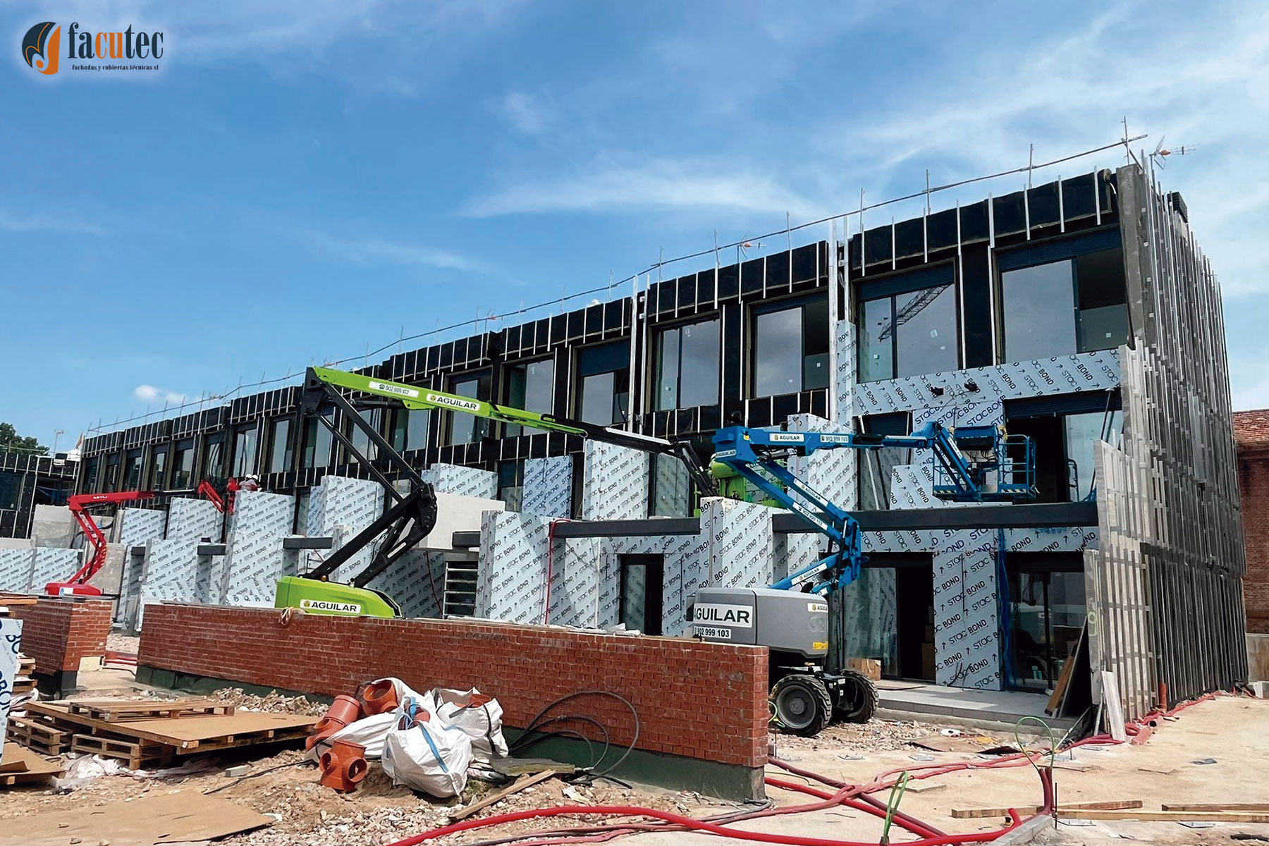 Facutec ha instalado una envolvente muy sofisficada y arquitectónica a base de grandes volumenes que se han conseguido con revestimientos y fachadas de panel composite de aluminio y por otro lado, nuestra instaladora AMS Instalaciones ha ejecutado los sistemas de yeso laminado, aislamientos termo-acústicos y soluciones de compartimentación relacionada con la protección pasiva contra incendios.
