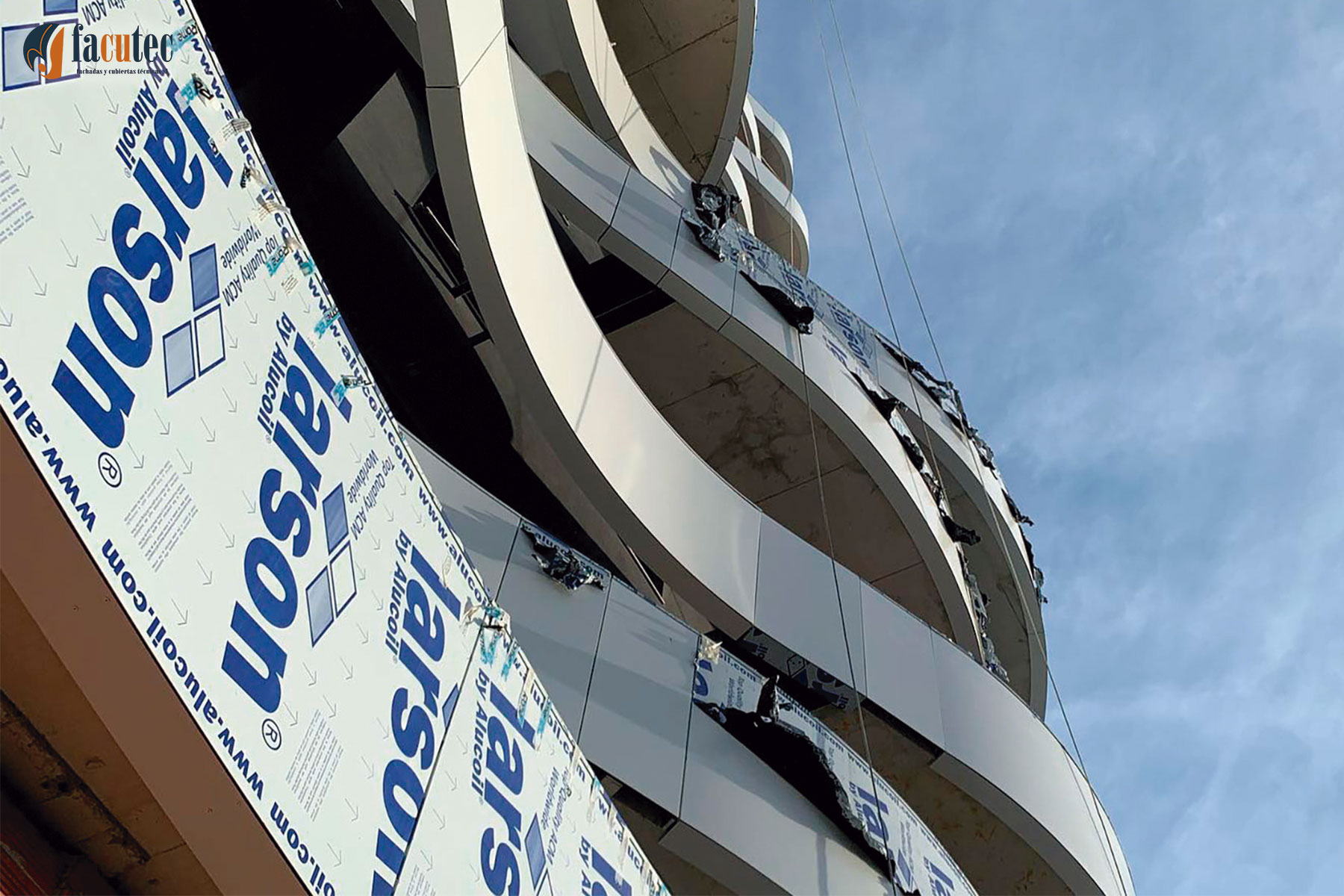 En el impresionante proyecto de 56 viviendas en Valencia, en la zona conocida por Malilla Norte, nuestra instaladora Facutec participó de forma destacada con la instalación  de una fachada ventilada de panel composite de aluminio