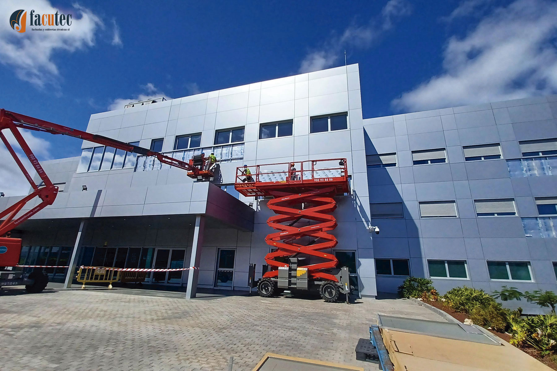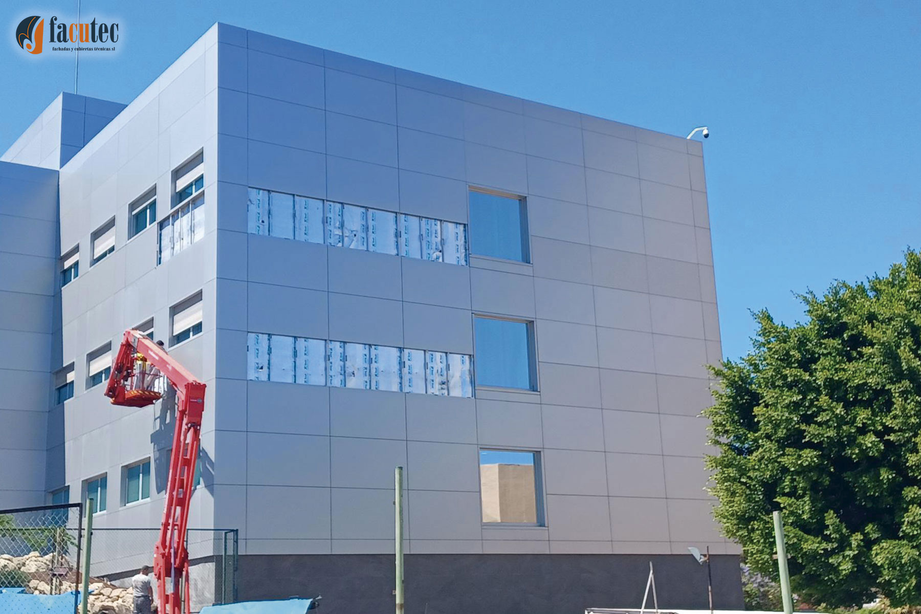 El pasado año 2023. nuestra instaladora Facutec, participó en el proyecto del ampliación del Hospital de la Candelaria, situado en Tenerife (Islas Canarias), donde ejecutamos una fachada ventilada de panel composite de aluminio así como en una intervención posterior, las barreras cortafuegos de las fachadas ventiladas