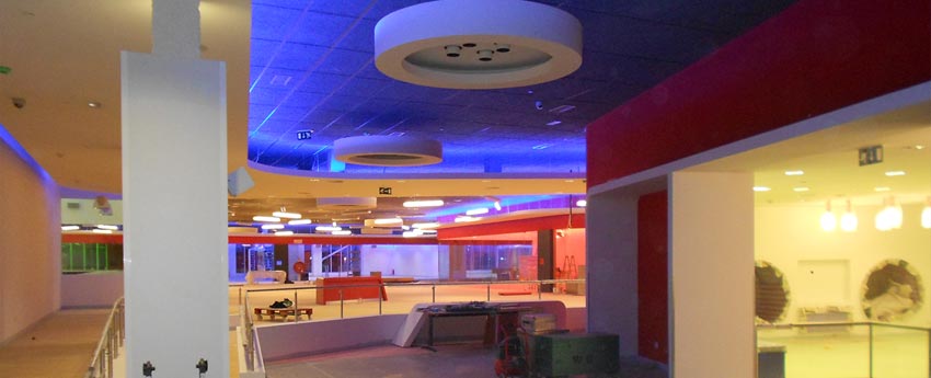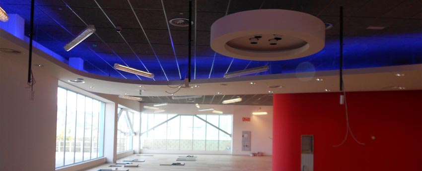 Nuestra empresa instaladora AMS Instalaciones, ha ejecutado los sistemas Knauf de construcción seca a base de placas de yeso laminado (tabiquería, trasdosados, falsos techos continuos y preformados de placa de yeso laminado), aislamientos (tanto aislamiento térmico, aislamiento acústico como acondicionamiento acústico), falsos techos de todo tipo (además de los techos contínuos, hemos instalado falsos techos registrables a base de viruta de madera, techos acústicos de lana mineral y escayola aligerada e inclusive falsos techos resistentes al fuego o techos ignífugos) en el espectacular gimnasio Virgin ubicado en una zona privilegiada de Alcala de Henares en Madrid
