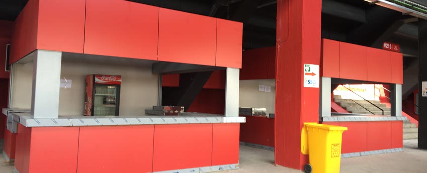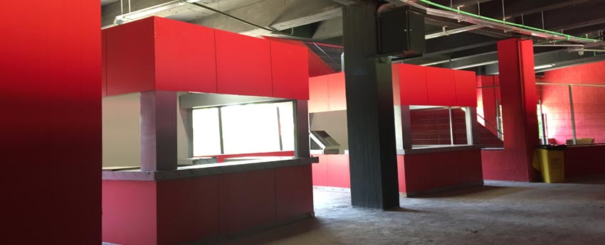 En ambas ocasiones, ejecutamos diferentes partidas de revestimientos interiores con paneles fenólicos del fabricante Formica, en el color rojo corporativo del equipo de futbol, y se revistieron diferentes instalaciones y equipamientos interiores.